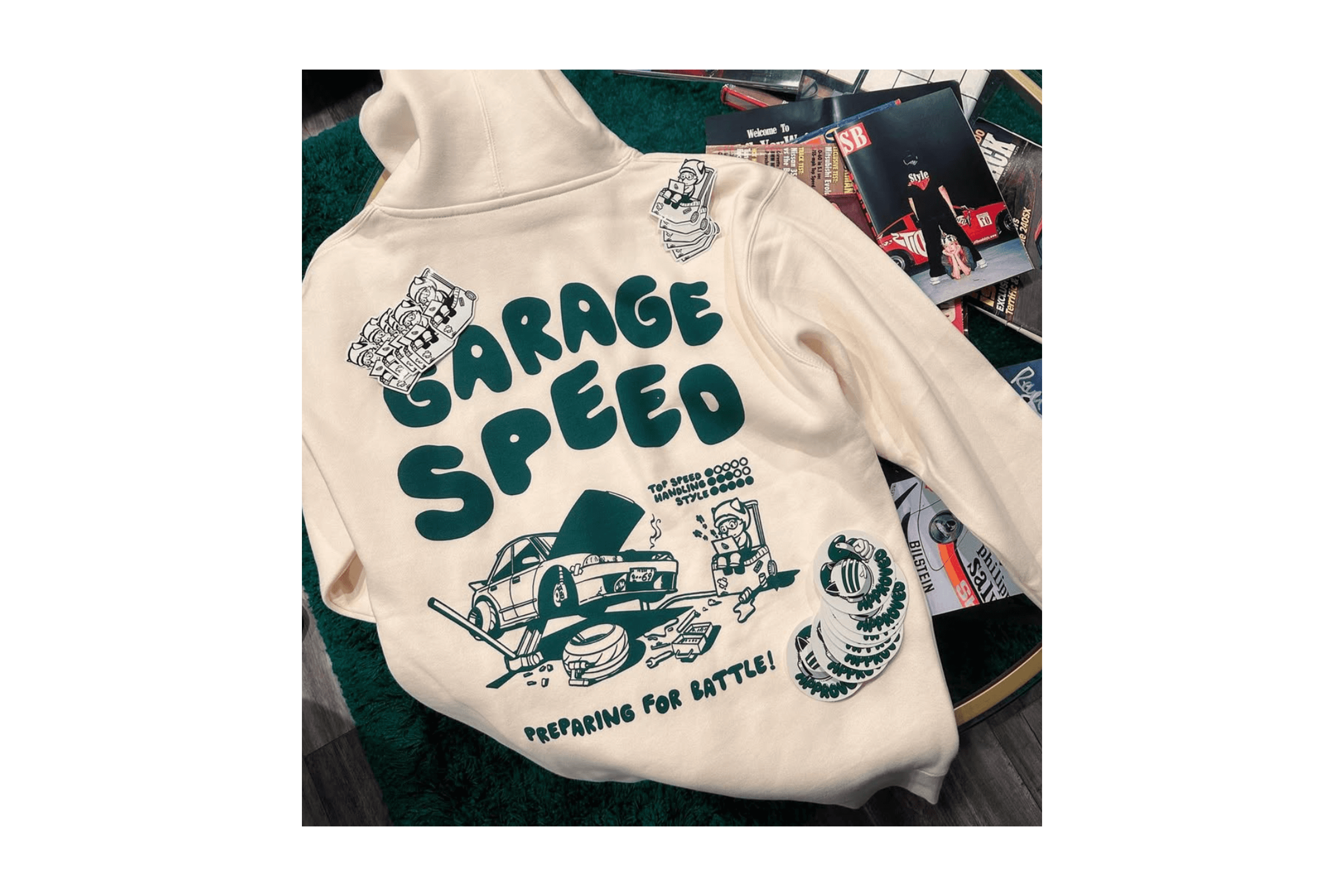 What started off as a silly sketch became one of our best selling designs at GarageSpeed! Featuring two colorways.